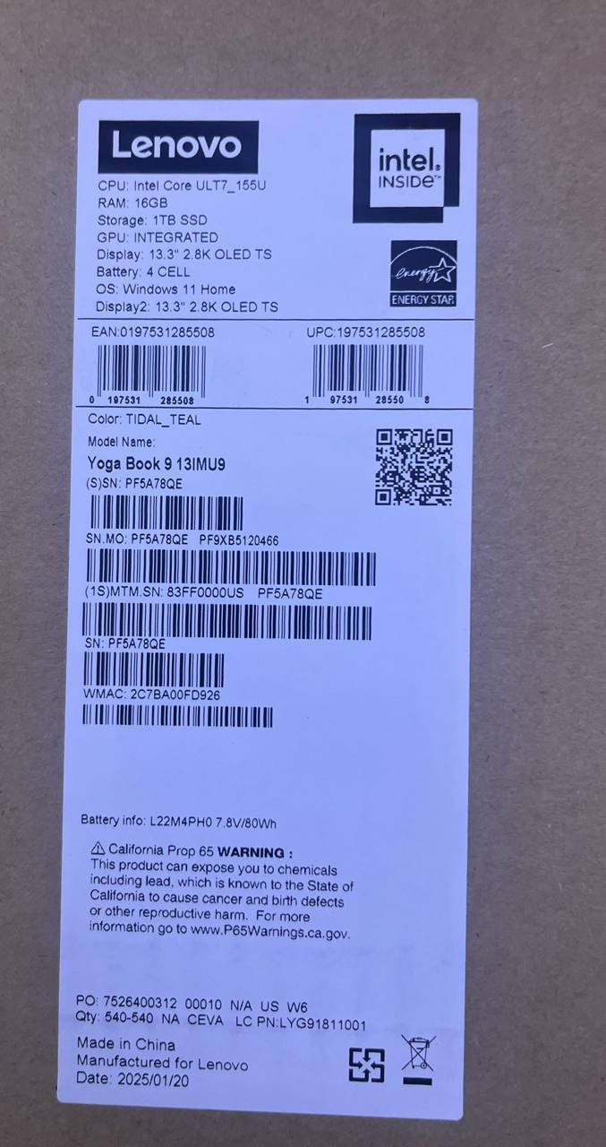 - Lenovo Yoga 9 13IMU9 - (109870), Intel Core Ultra 7-155U, RAM 16GB, SSD 1TB, Intel® Graphics, 13.3" 2.8K WQXGA+ Touch OLED, Tidal Teal