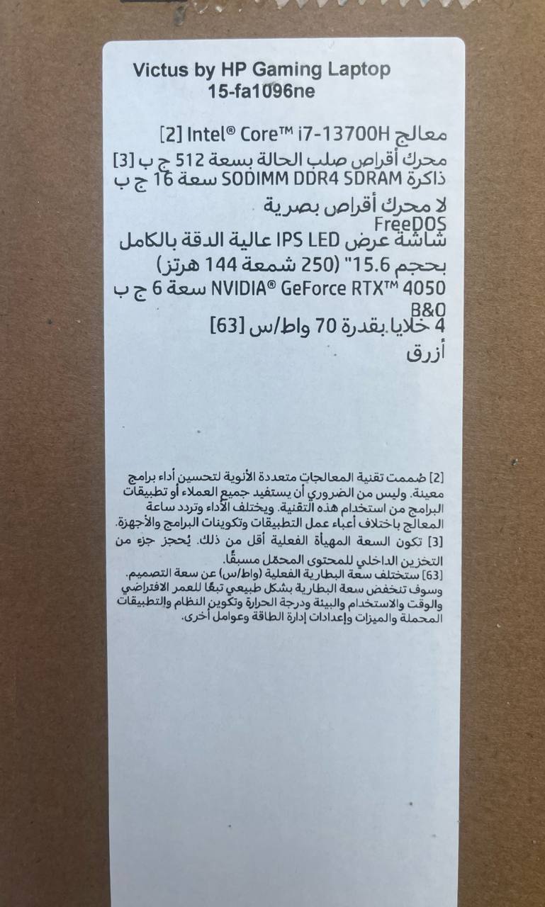 - HP Victus 15-fa1096ne, Intel Core i7-13700H, RAM 16GB, SSD 512GB, NVIDIA RTX 4050 6GB, 15.6 Inch IPS 144Hz, Blue