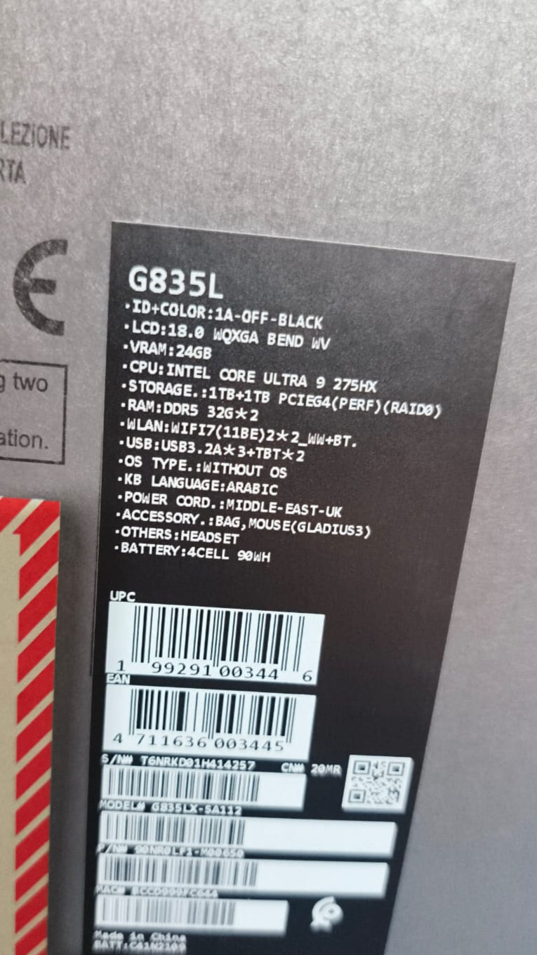 CPU:Intel® Core™ Ultra 9-275HX 2.7 GHz (36MB Cache, up to 5.4 GHz, 24 cores, 24 Threads); Intel® AI Boost NPU up to 13TOPS