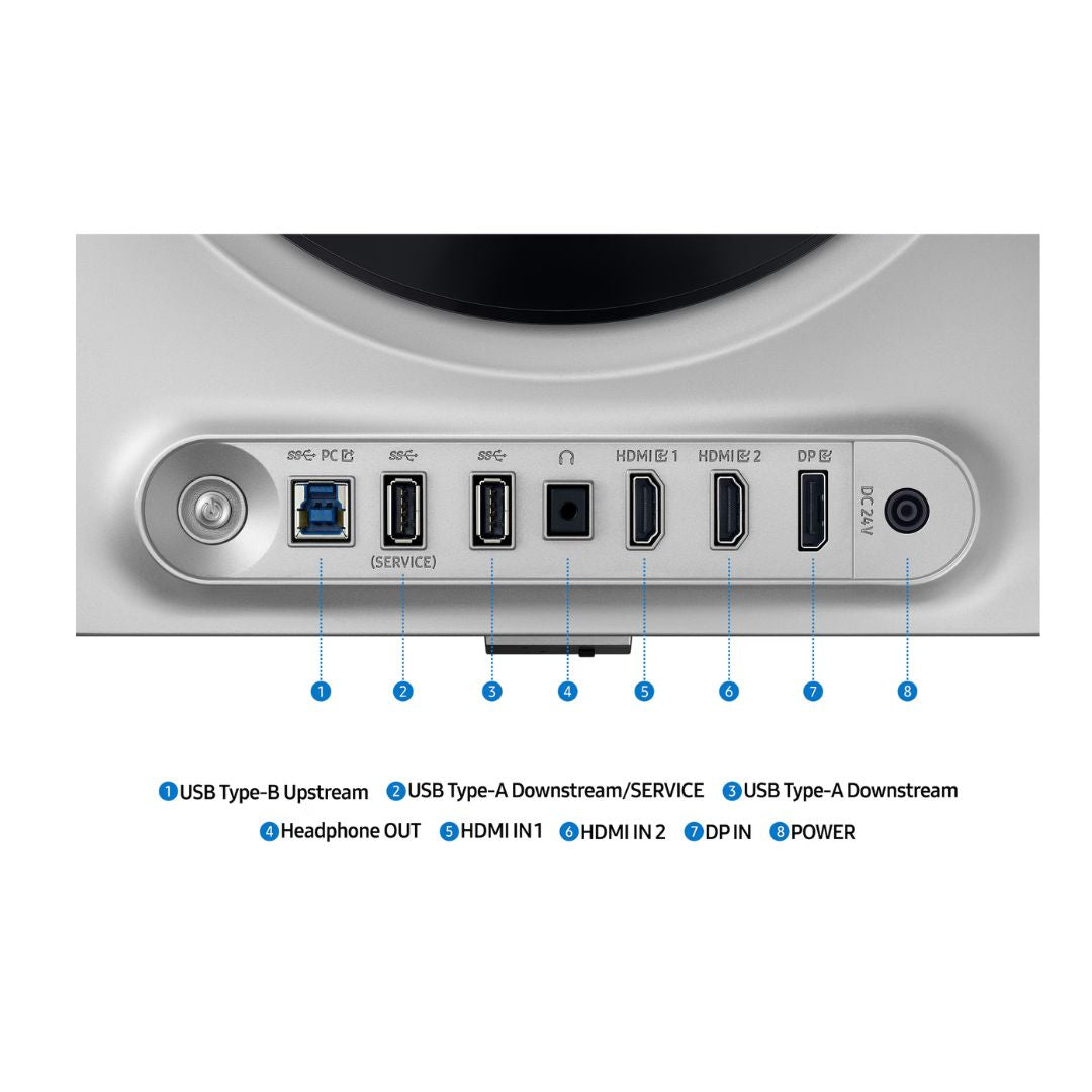 Video Ports: 1 × DisplayPort 1.4, 2 × HDMI 2.1, 1 × USB-B Upstream, 2 × USB 3.0 Hub, Headphone Jack